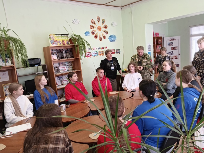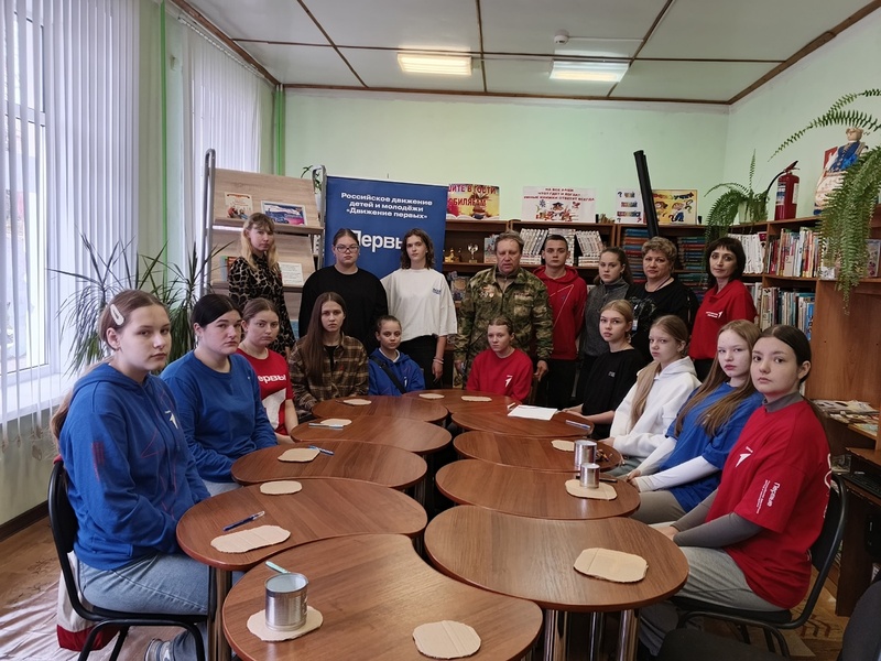 В первичном отделении «Движения Первых» Суражской городской детской библиотеки в рамках мероприятий, посвященных поддержке военнослужащих и их семей, прошла акция «Тепло, которое согревает» в формате классной встречи с участием почетных гостей: участника СВО Багданова Павла Юрьевича и социального координатора Фонда "Защитники Отечества" Стасевич Натальи Александровны.