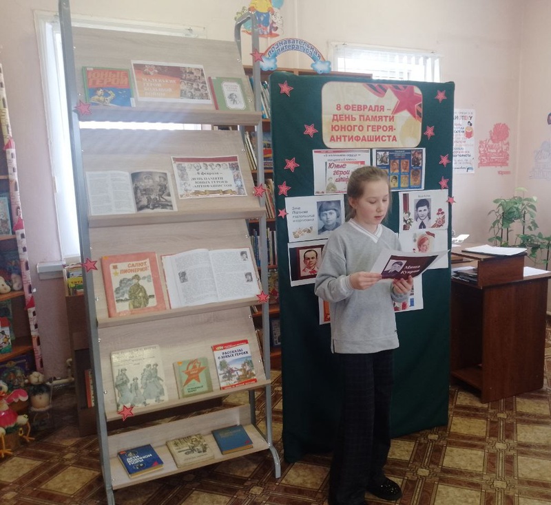 В преддверии этой памятной даты в Суражской городской детской библиотеке прошел час истории «В маленьком сердце – священный огонь» для учащихся 4-б класса МБОУ СОШ № 3 (кл. рук. Товпеко А.М.). Стены библиотеки стали живой галереей памяти: фотографии юных защитников Родины и рассказ об их подвигах не оставили детей равнодушными. Библиотекарь Ховрунова О.В. рассказала ребятам о советских мальчишках и девчонках, которые в годы тяжёлых испытаний стали символом невероятного мужества. Они не просто жили на оккупированных территориях – они сражались: в подполье, в партизанских отрядах, на фронте и в тылу врага. Миша Куприн, Марат Казей, Зина Портнова, Валя Котик, Лёня Голиков и многие другие – эти имена навеки останутся в памяти поколений. В ходе мероприятия девчонки и мальчишки с большой гордостью прочитали стихи в память о погибших героях.