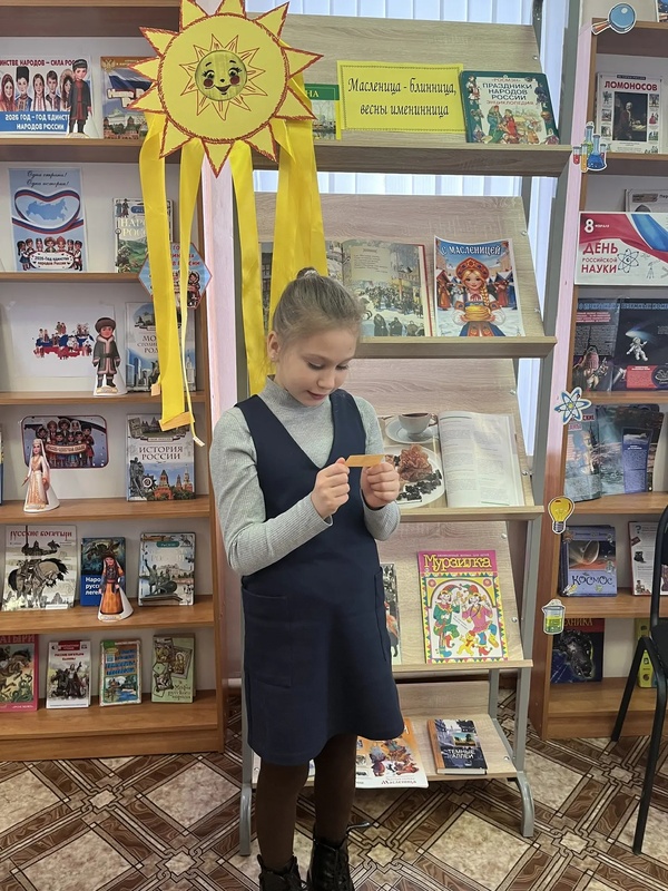 В Суражской городской детской библиотеке в рамках цикла мероприятий к Году единства народов России задорно и весело прошла игровая программа «Здравствуй, Масленица!» для учащихся 3-а класса МБОУ СОШ №3 (классный руководитель Толока О.В.). Дети вместе с ведущими Ховруновой О.В., Колесниковой Н.А. смогли окунуться в атмосферу весёлого праздника. Интересным и запоминающимся был рассказ о традициях народного праздника, о русских народных играх, проходивших на Масленицу. Ребята познакомились с историей праздника, а также вспомнили, как называется каждый день масленой недели. В ходе мероприятия девчонки и мальчишки отгадывали загадки о Масленице, дополняли пословицы и поговорки, читали стихи, играли в игры: «Самый ловкий», «Шкатулка мудрости», «Солнышко», водили весёлый хоровод. Игровая программа прошла в тёплой обстановке и вызвала положительные эмоции у всех присутствующих. К мероприятию была оформлена книжно-иллюстративная выставка «Масленица-блинница, весны именинница». Юные читатели с большим интересом познакомились с представленными книгами. Проводя такие мероприятия, мы передаем младшему поколению нашу историю и надеемся на то, что они будут продолжателями русских традиций. Но какая же масленица без блинов? В завершение мероприятия гости праздника угощались пышными блинами.
