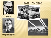 «Когда после всей нашей программы на сцену вышла эта девочка и спела песню, в зале стоял стон от аплодисментов. Никак не хотели зрители отпускать со сцены молодую певицу, и она трижды пела на бис», - вспоминал Матвей Блантер. В 1941 году песня ушла на фронт вместе с солдатами. Опаленные огнем Великой Отечественной войны мелодии Матвея Блантера продолжает звучать и сегодня. Его вальс «В лесу прифронтовом» - грёзы о мирной жизни, которые согревают солдат перед боем. А проникновенные стихи военного репортера Константина Симонова стали песней «Жди меня». «Огонек», «Как служил солдат», «Песня военных корреспондентов»… В 1946 году рождается полная боли и горечи композиция «Враги сожгли родную хату» и сразу же попадает под запрет.