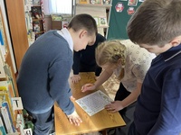 Заведующая отделом обслуживания Морозова Е.В. провела для детей мастер-класс по изготовлению праздничных открыток. Школьники с большим удовольствием и старанием приняли участие в творческой работе. К мероприятию была оформлена книжная выставка «На страже мира и добра», на которой представлены книги об истории России, о доблестных защитниках родной земли, о богатырях, полководцах, великих битвах и сражениях, о победах и славе народа нашей страны.