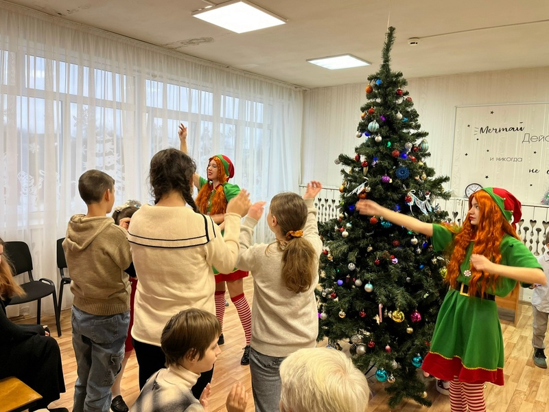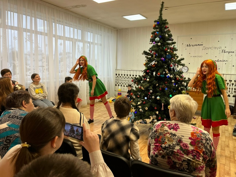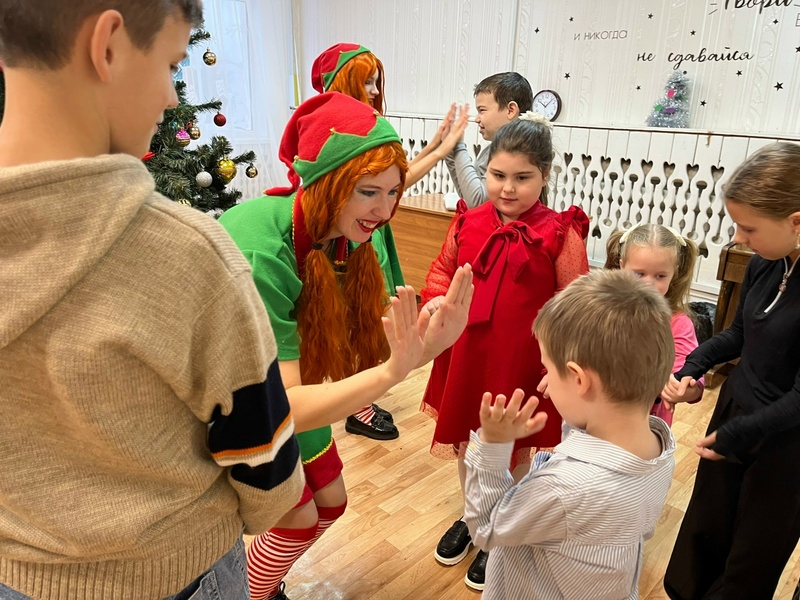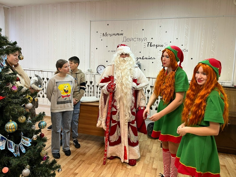 В гости к девчонкам и мальчишкам пришли озорные Эльфы (Морозова Е.В. заведующая отделом обслуживания МБУК «Суражская городская детская библиотека» и Ходарина Екатерина учащаяся 9 «А» класса МБОУ СОШ №3), у которых случилась беда, не работает телефон, а значит Новый год под угрозой. Ребята вместе с Эльфами выполняли задания, чтобы спасти праздник, участвовали в музыкальных играх, пели, танцевали. Кульминационным моментом стало появление Деда Мороза (Товпеко Д.А.), который собрал всех в дружный хоровод, поздравил с наступающими праздниками и вручил сладкие призы.
