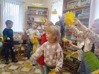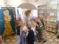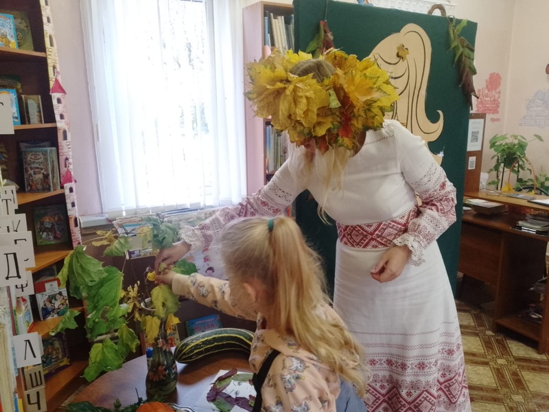 В Суражской городской детской библиотеке прошел праздник «Закружилась в небе Осень» для воспитанников подготовительной группы детского сада «Капелька». Хозяйка праздника — яркая, нарядная Осень (зав. отделом обслуживания Морозова Е.В.) подарила детям много добрых эмоций, весёлого настроения. Дети кружились в осеннем вальсе, собирали урожай, отгадывали загадки, прыгали по лужам, украшали листьями портрет Осени.