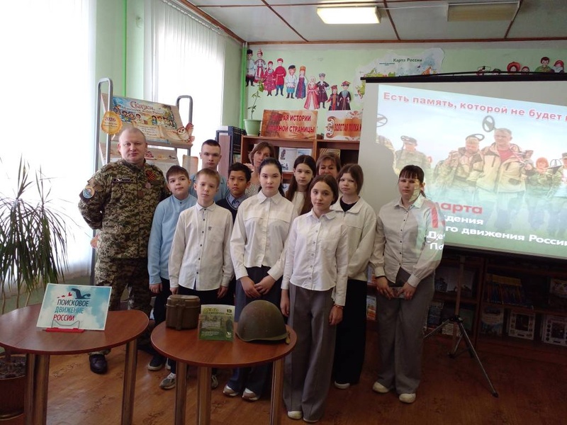 В рамках патриотического воспитания юных читателей в Суражской городской детской библиотеке для учащихся 6-а МБОУ СОШ № 1 (кл. руководитель Кохан Е. В.) прошел урок-встреча «Есть память, которой не будет конца» с заместителем руководителя Суражского поискового отряда «Ипуть» Пискуновым Алексеем Александровичем.