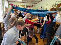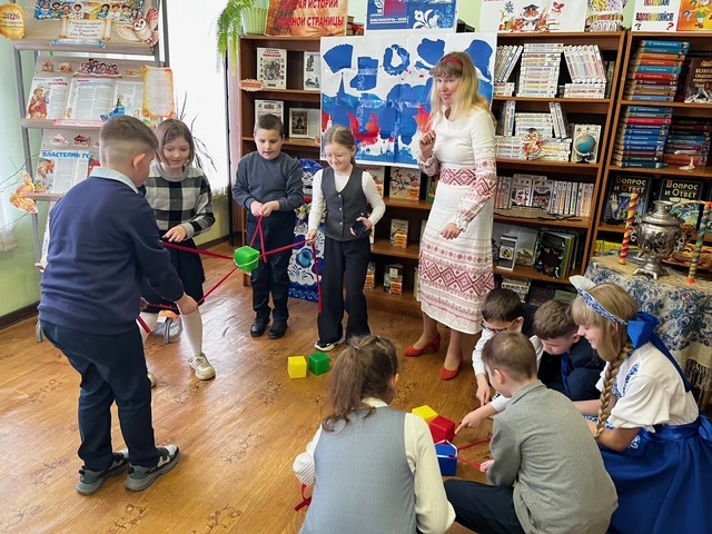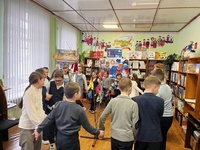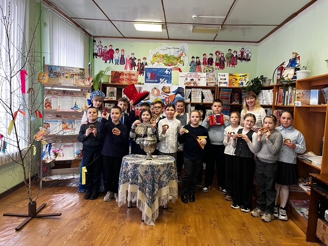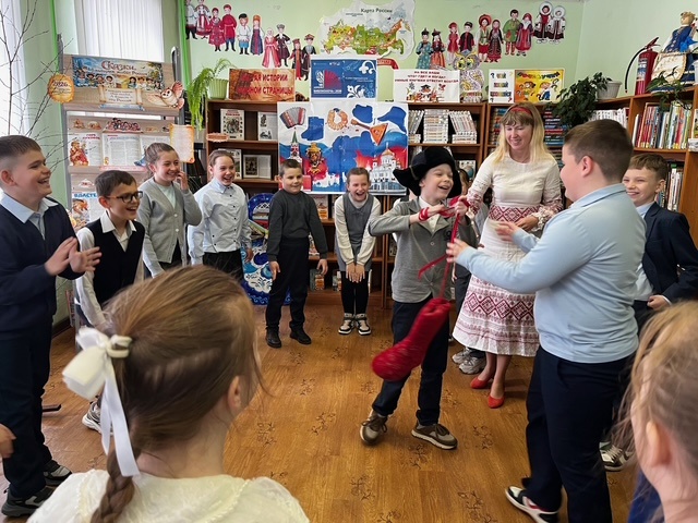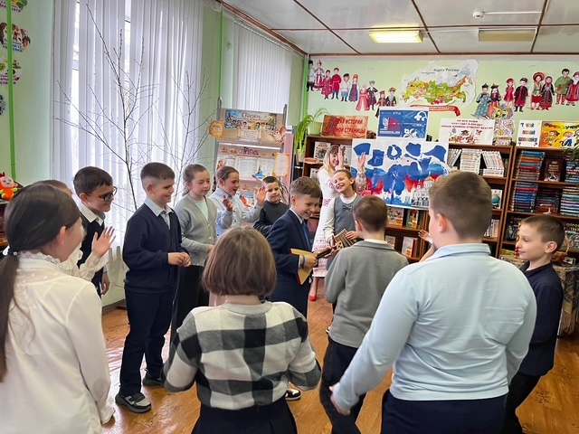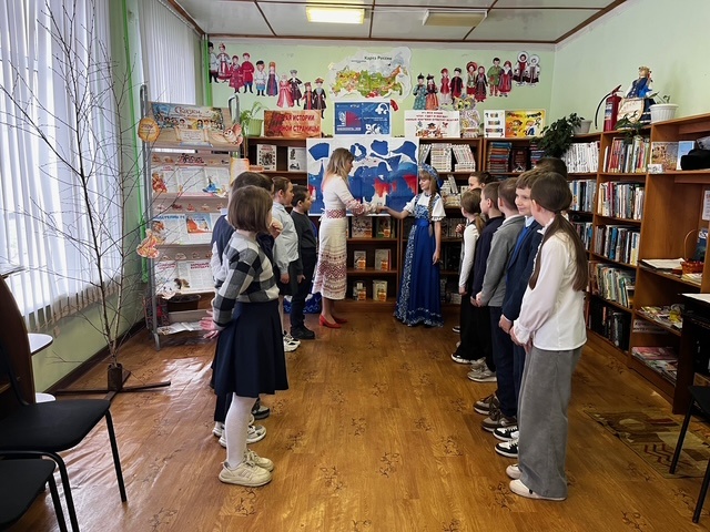 В Суражской городской детской библиотеки прошла Всероссийская акция «Библиосумерки-2026» для учащихся 3 «А» класса МБОУ СОШ №2 (кл.руководитель Бугаева Т.В.). Задорные ведущие (заведующая отделом обслуживания Морозова Е.В., учащиеся 6 «Б» и 9 «А» классов МБОУ СОШ №3 Ходарины Анастасия и Екатерина) погрузили гостей праздника в мир традиций, мелодичных звуков национальных инструментов, гостеприимство и необычные блюда, чтобы каждый смог почувствовать себя частью большого дружного семейства народов России. Ведь каждая традиция — это маленькая жемчужина в ожерелье великой истории нашей страны! Девчонки и мальчишки весело и дружно водили хоровод, играли на народных инструментах, заводили «ручеек», были зодчими и гостеприимными хозяевами.